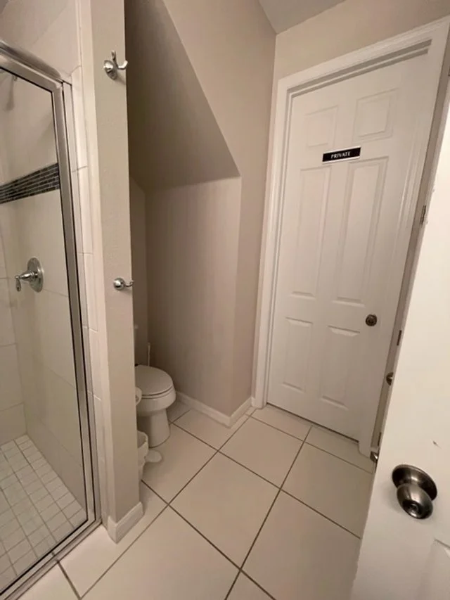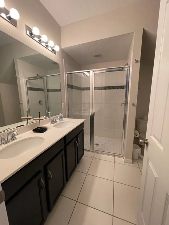 A shower large enough for two! This bathroom has plenty of space. Tons of storage for all your toiletries,